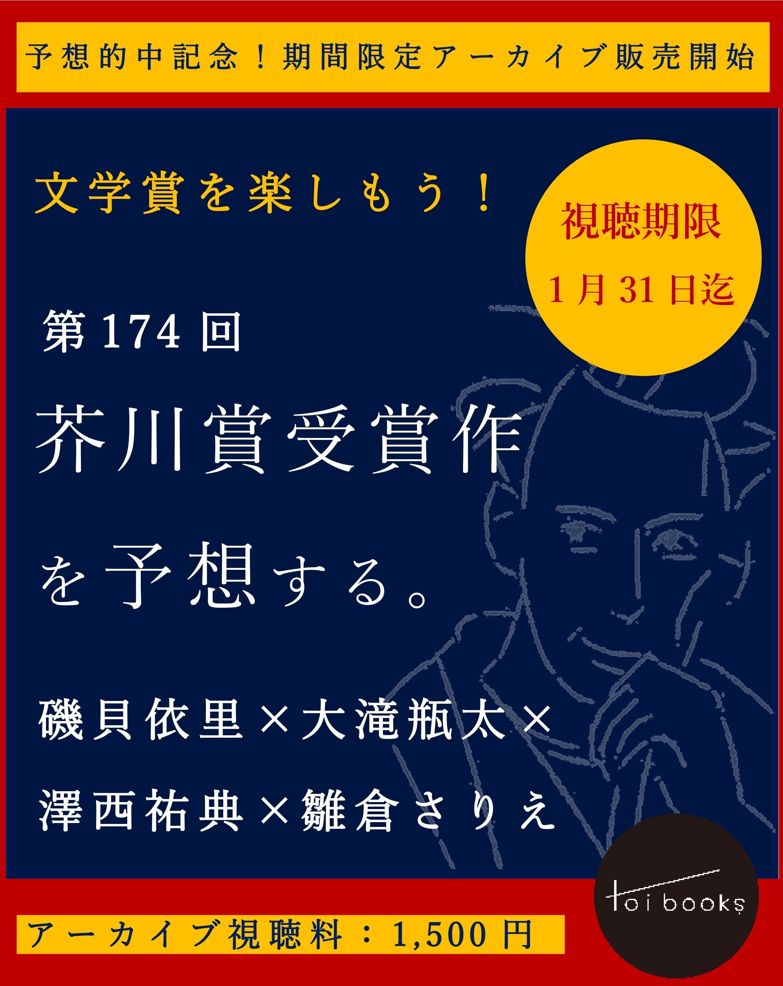 【EVENT ARCHIVE】 「第174回芥川賞受賞作を予想する。」 磯貝依里×大滝瓶太×澤西祐典×雛倉さりえ(174芥川賞受賞作イベント案内.pdf)