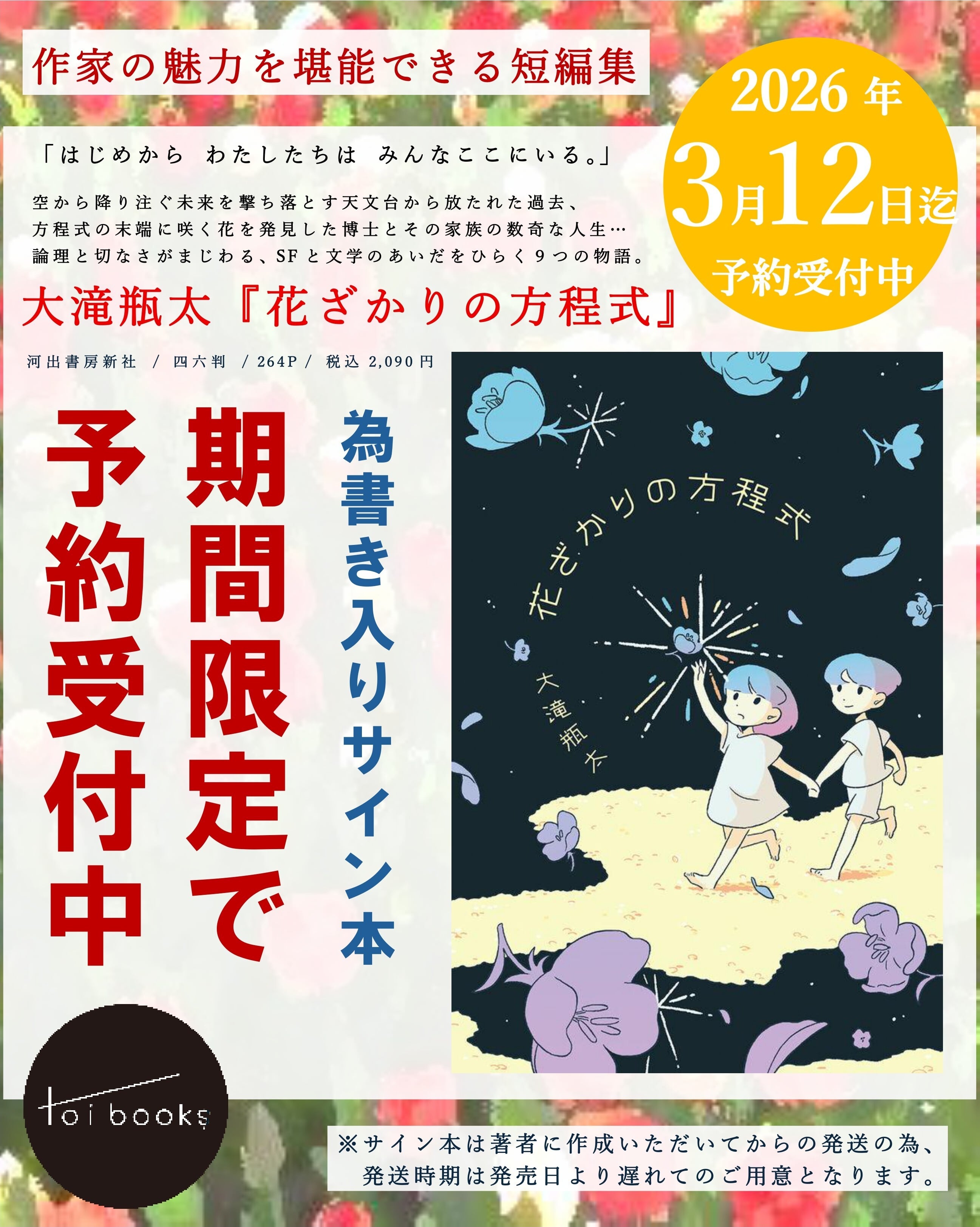【3月12日迄為書き入りサイン本予約受付中】『花ざかりの方程式』 大滝瓶太