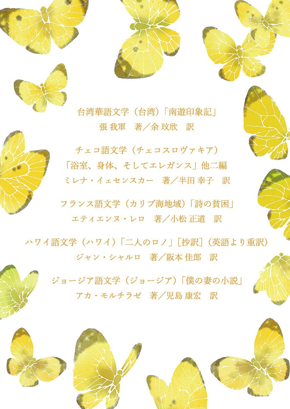 今回は台湾(台湾華語)、チェコスロヴァキア(チェコ語)、カリブ海地域(フランス語)、ハワイ(ハワイ語・英語から重役)、ジョージア(ジョージア語)の5地域、5言語から、個性的なテクストを日本語に翻訳・紹介しています。