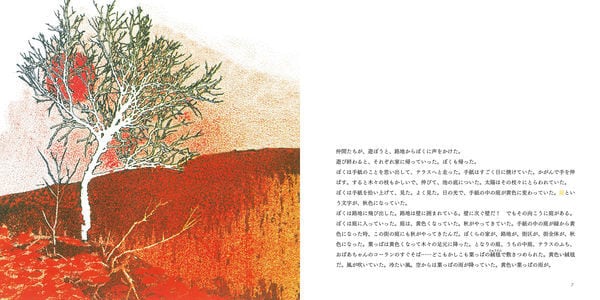詩的な言葉で少年の心理を幻想的に描写したアフマディーの物語に、作画を担当したキアロスタミは写真のコラージュに彩色を施して、そのイメージを見事に定着させました。ドキュメンタリーのような手法を駆使して、「ここにしかない今」を追求したキアロスタミの「一瞬」への執着を垣間見ることができる貴重な絵本でもあります。