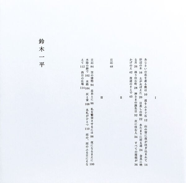 いぬのせなか座のメンバーとして活動し、『ユリイカ』『花椿』『HAPAX』『現代詩手帖』『三田文学』『現代思想』など各誌に作品・論考を寄稿する詩人・鈴木一平の、記念すべき第一詩集。